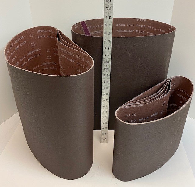Our premium conveyor belts are Aluminum Oxide in grit 120X on"X" weight polycotton backing.