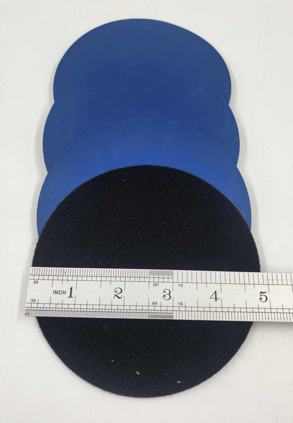 SOLID 1/8" CONVERSION DISCS BLUE VINYL (H&L) Hook & Loop TO (PSA) Pressure Sensitive Adhesive.