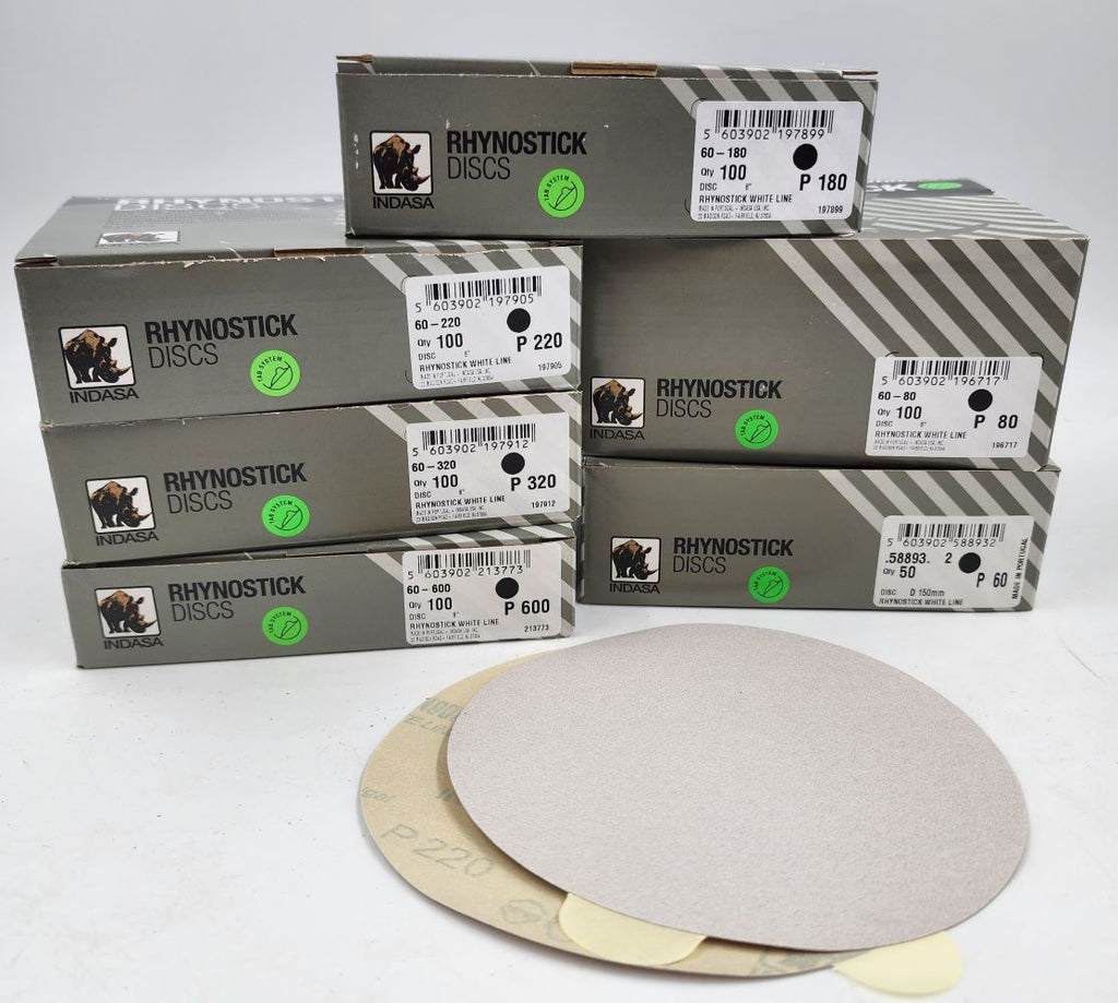 PSA INDASA RHYNO WHITE DISCS .. INDASA RHYNO WHITE A.O. RESIN on "C" and "D" weight paper backing. Premium grain, non-loading, suitable for today's new water-based finishes. Best performance/value for auto body and wood working.